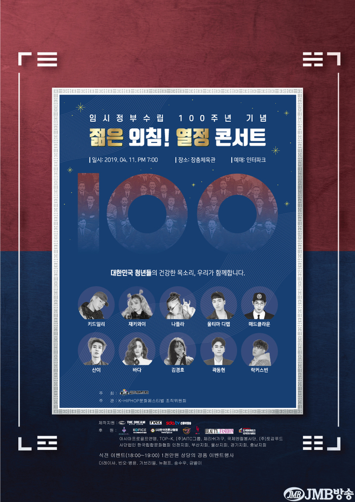 한편, 사)한국힙합문화협회는 올해 임시정부수립 100주년을 맞아 다양한 사회공헌 콘서트를 지속적으로 전개할 예정이다. 추달호 상임고문과 이종희 집행위원장(상임 부회장)은 한 목소리로 “청소년들에게 임시정부수립의 중요성을 일깨우면서 당시의 젊은열정과 지금의 젊은열정이 다르지 않고 같은 뜻으로 함께 갈 수 있다”고 강조했다.