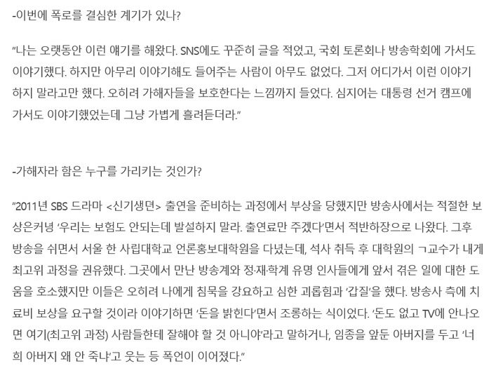 이어 “이매리씨를 믿고 최초 보도를 했는데 납득이 가지 않는다”면서도 피해자로 주장하는 이 씨에 대한 말을 아끼겠다고 했다.