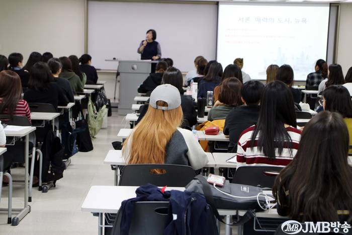 [jmb방송=김은해 기자]성신여자대학교 간호학과 후배들에게 선배의 자격으로 강단에 선 컬럼니스트 정(최)은실은 조국을 떠난 타향인으로, 또한 두 나라의 문화를 공유하고 있는 경제인으로 34년을 한 곳에서만 살아왔던 뉴욕이라는 도시에 대한 이야기로 강의를 시작 한 것은 본인의 체험에서부터였다.