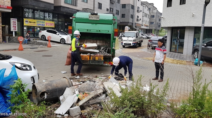 이번 작업은 조리읍 장곡리 일원의 보행에 불편과 미관을 저해하는 인도 잡풀 제초작업과 도로 환경정비를 실시했다.