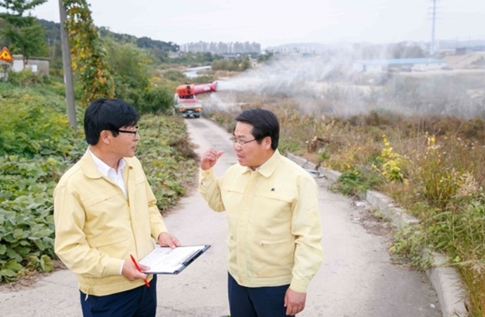 배방읍 갈매리 거점소독시설을 방문한 오 시장은 “철새 도래지인 곡교천과 삽교천에 대해 고병원성 AI에 버금가는 철저한 소독, 예찰, 검사를 통해 AI 등 재난형 가축전염병의 사전 대비로 내년 3월말까지 진행되는 특별방역기간 근무에 만전을 기해달라”고 당부했다.
