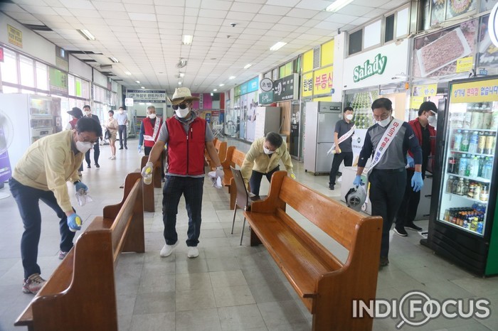 각 동을 중심으로 일제히 모인 방역단은 방역 지침에 따라 마스크 및 방호복을 착용하고 거리 두기를 준수하며, 휴대용 소독기와 스프레이 형 소독제 등을 이용해 관내 광장, 공원, 상가, 버스정류장 등 다중이용시설 및 방역 취약지역을 중심으로 꼼꼼히 소독을 실시했다.