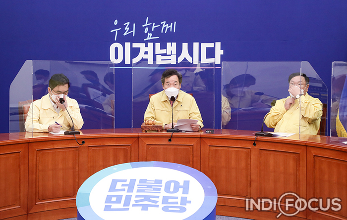 ▲ 이낙연 더불어민주당 대표(가운데)가 7일 국회에서 열린 최고위원회의에서 발언하고 있다 © 인디포커스