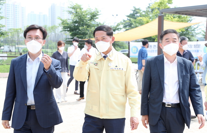 이날 이재준 고양시장은 ‘약자의 눈’ 소속 김민석 국회의원(서울 영등포구을), 강득구 국회의원(경기 안양시만안구)과 함께 덕수공원 반려견 놀이터를 방문하여 운영 현장을 꼼꼼히 둘러보았다.