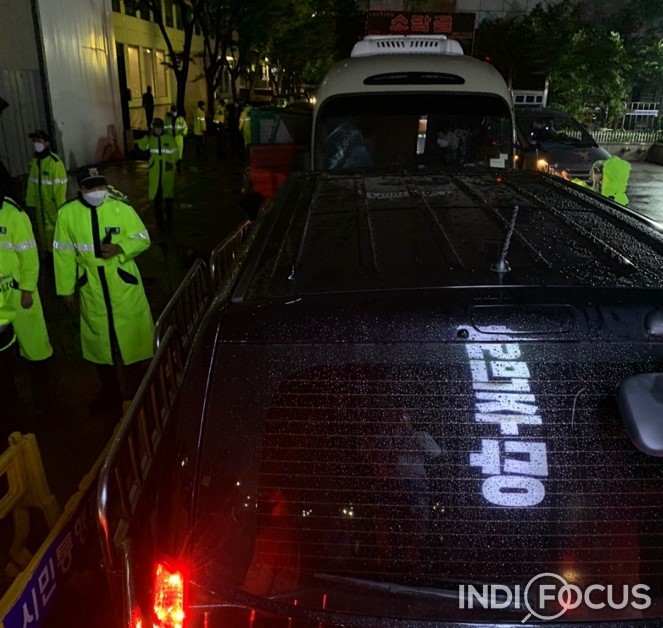 여의도 민주당사앞 경찰차벽설치 © 인디포커스 사진/김병건