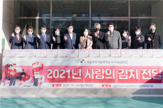 [인디포커스/김은해] 지난 6일 노원구 공릉동에 위치한 서울과학기술대학교 대학본부 1층에서는 작년에 이어 ‘2021 사랑의 김치전달식’ 행사가 개최되었다.