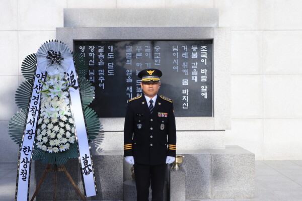▲ 양산 충혼탑을 참배한 신임 한상철 양산경찰서장 ©김중건