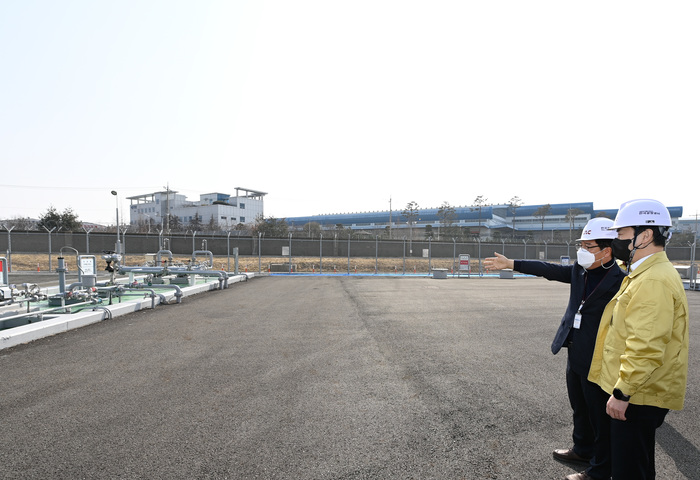 ▲ 윤형중 한국공항공사 사장이 김해공항 항공유저장소에서 현장 안전점검을 실시하고 있다. © 김중건