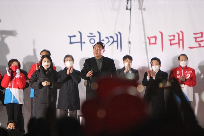 서울시청앞 광장에서 윤석열 국민의힘 후보가 연설 하고 있다.© 인디포커스