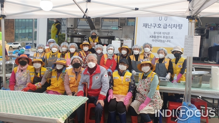 【인디포커스/송창식 기자】대한적십자봉사회 문경시지구협의회(회장 김정이)는 11일 울진군 산불 피해현장을 방문하여 산불진화대를 위한 급식 자원봉사활동에 나섰다.경북적십자봉사회는 울진군의 산불진화를 위해 전국에서 모인 공무원 및 산불진화대원을 위로하고자 울진군 죽변면 산불현장지휘본부와 한울원자력본부 현장지휘소에 자리를 잡고 급식봉사를 하고 있다.