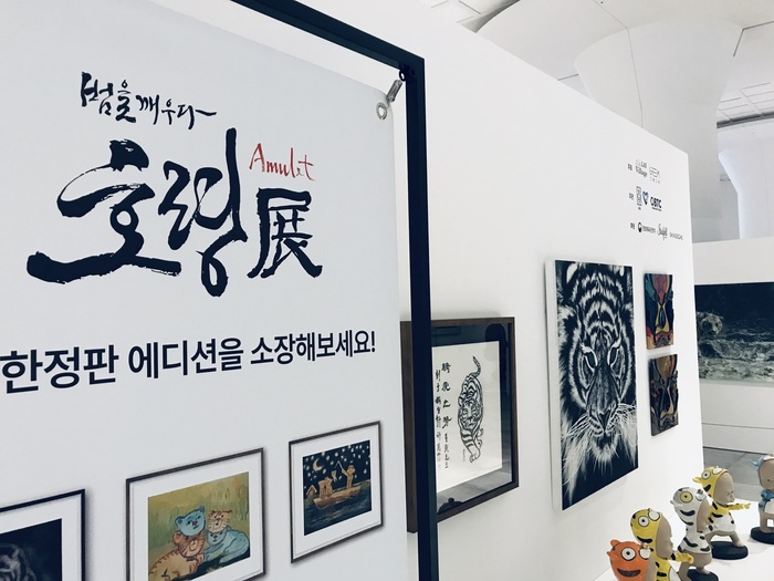 전시에서는 한정판 에디션 작품 구매는 물론 호랑이 작품이 담긴 스마트폰 그립톡 등 다양한 기념품을 구입할 수 있다.