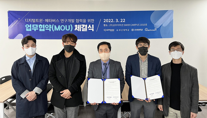 (인디포커스/김중건) 부산대·부경대 BK21 교육연구단이 XR(확장현실) 토탈 솔루션 전문업체인 ㈜삼우이머션과 손잡고 디지털트윈 및 메타버스 연구개발에 협력해 나가기로 했다.