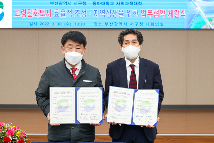 이번 협약으로 동아대 사회과학대학과 부산 서구청은 세계보건기구(WHO) 인증 고령친화도시 효율적 조성과 지역 상생을 위한 학술연구와 정책 세미나, 취업 정보 교류, 교육 프로그램 등에 협력한다.