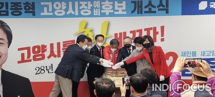 [인디포커스/김은해]고양시를 확 바꾸자! 국민의힘 김종혁 예비후보 사무실 개소식이 16일 오전 11시 고양시 덕양구 화정동 사무실에서 열렸다.