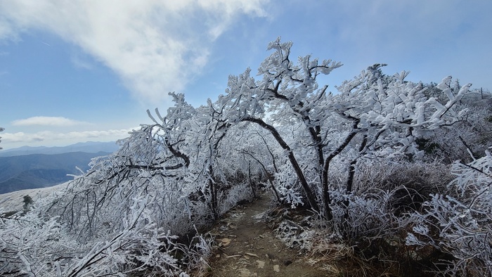 지난 15일 강원도 평창군 용평리 용평리조트 내 1450m 발왕산 정상 상고대에 눈꽃이 만발했다.