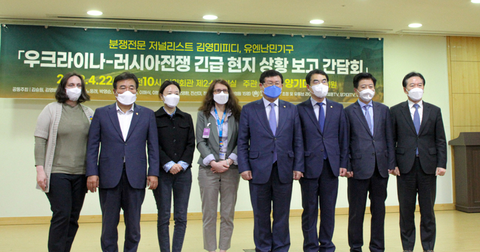 22일 더불어민주당 설훈‧양기대 국회의원은 국회의원회관에서 ‘우크라이나-러시아전쟁 긴급 현지상황 보고 간담회’를 개최했다. 노웅래, 양정숙, 이병훈, 정태호 등의 국회의원이 참석해 힘을 보탰다.