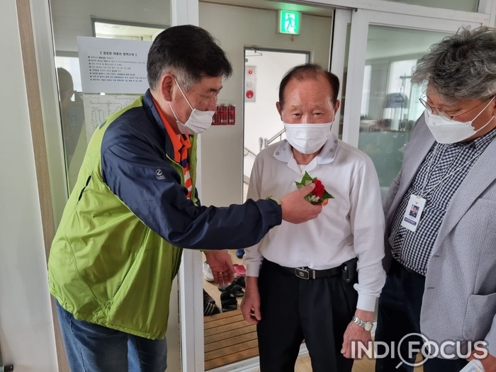 [인디포커스/김봉선]제 50회 어버이날을 앞두고 영등포구 대림동 위취한 사랑나눔 봉사단체가 어버이날 카아네이션 달아주기 행사를 서울영등포경찰서(서장 : 총경 정성일) 공공안녕정보외사과와 함께 진행했다.