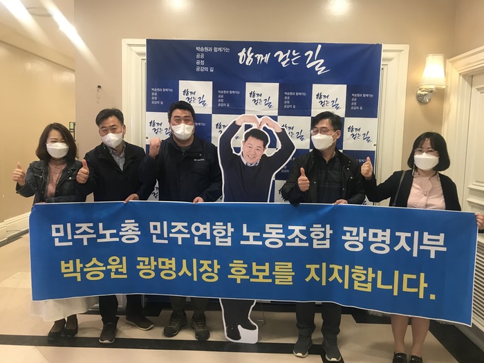 박승원 광명시장 예비후보를 지지선언하고 있는 민주노총 광명지부 © 인디포커스