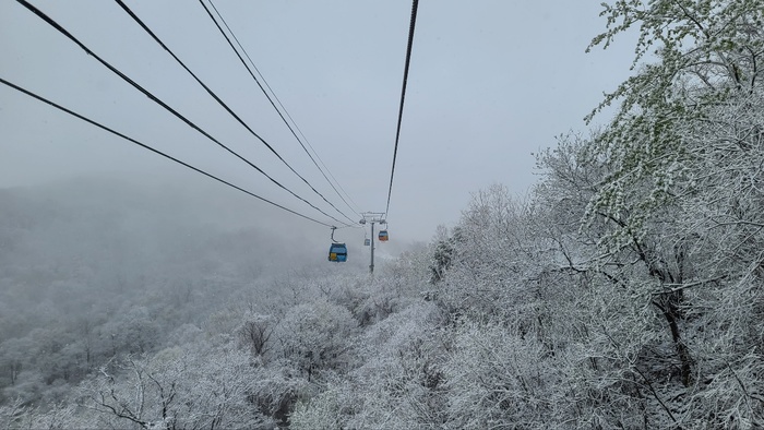 이날 눈이 쌓인 발왕상 정상과 평창 리조트에는 때 늦은 눈꽃 풍년에 두터운 외투를 찾는 등 계절의 역 주행에 당황해하고 행복해 했다.