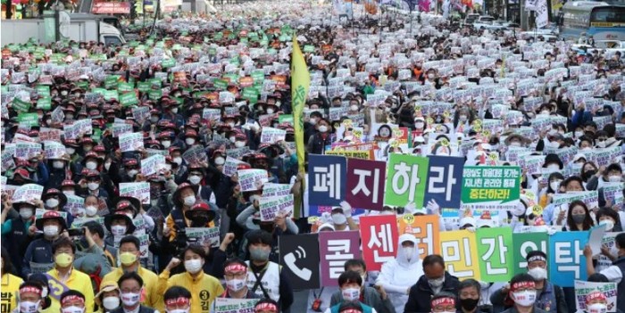민주노총은 정부의 코로나19 사회적 거리 두기 해제 이후 노동절을 맞아 주말 전국 곳곳에서 대규모 집회를 열고 오는 10일 출범하는 윤석열 당선인 새 정부를 향해 “일하는 사람 모두에게 보편적 노동권과 질 좋은 일자리를 보장하라”고 외쳤다.