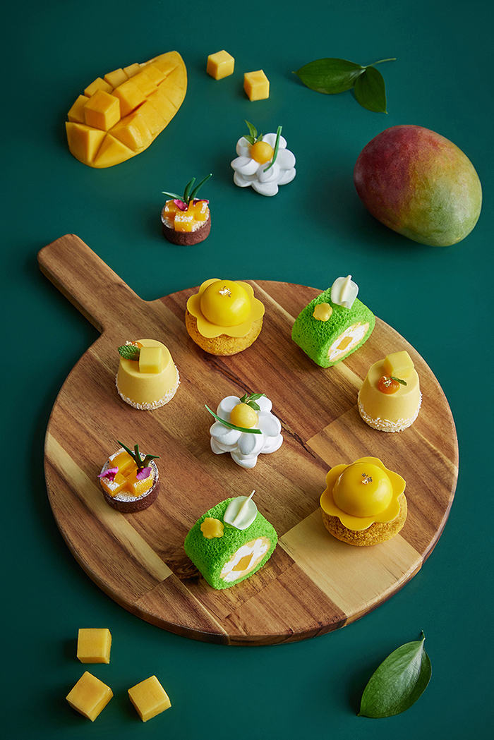 디저트로는 달콤하고 바삭한 망고 타르트와 폭신하고 부드러운 망고 롤케이크, 코코넛 젤리가 들어간 망고 무스, 두툼한 머랭에 망고를 얹은 망고 페블로바, 망고무스와 초콜릿으로 만든 꽃 모양 모자를 쓴 망고 쿠키 슈를 제공한다.