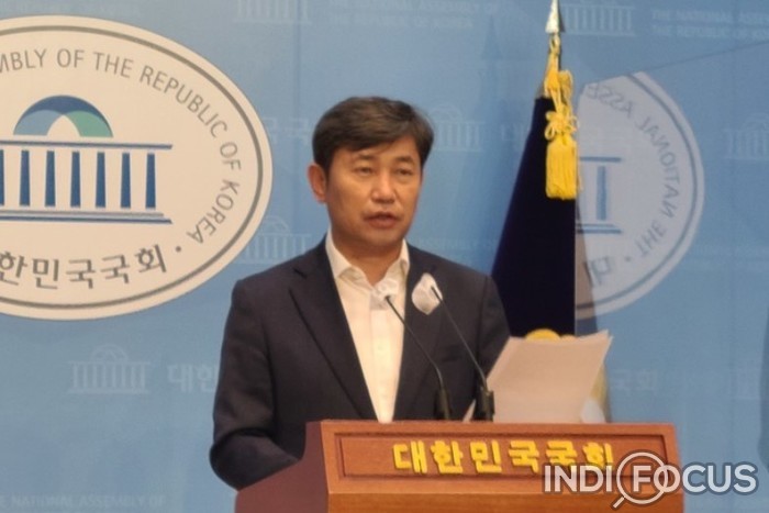 ▲ 3일 국회 소통관에서 기자회견 중인 조오섭 더불어민주당 대변인 © 인디포커스