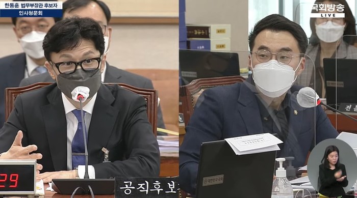 이날 한동훈 법무부 장관 후보자 인사청문회 증인으로 한동수 대검찰청 감찰부장, 임은정 법무부 감찰담당관(부장검사), 김경율 회계사, 박영진 의정부지검 부장검사가 출석했다.