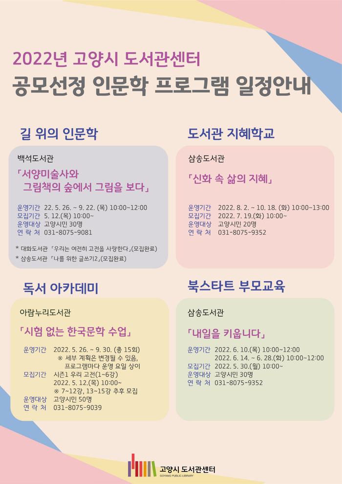 고양시 도서관, 올해 인문학프로그램 ‘풍성’한층 질 높은 인문학 여행…도서관 상주작가부터 심화프로그램까지