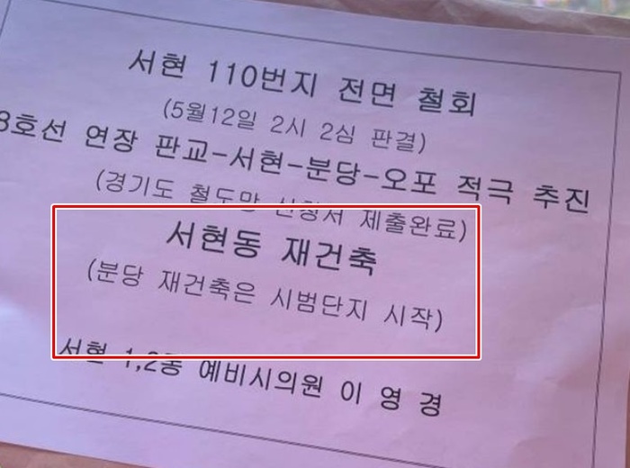 한편 지난 11일 분당구 부동산업계에서는 이영경 시의원 후보의 ‘서현동 재건축’ 현안에 우려의 시선을 보냈다.