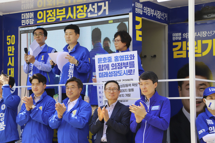 김원기 더불어민주당 의정부시장후보는 24일 제일시장 상권활성화재단 앞에서 윤호중 더불어민주당 비상대책위원장, 홍영표 전 원내대표, 김민철 국회의원, 오영환 국회의원과 시·도의원 후보자들과 함께 경제공약 발표회를 가졌다. 이날 공약발표회는 의정부제1선거구에 출마한 김경선 경기도의원 후보의 사회로 시작됐다.