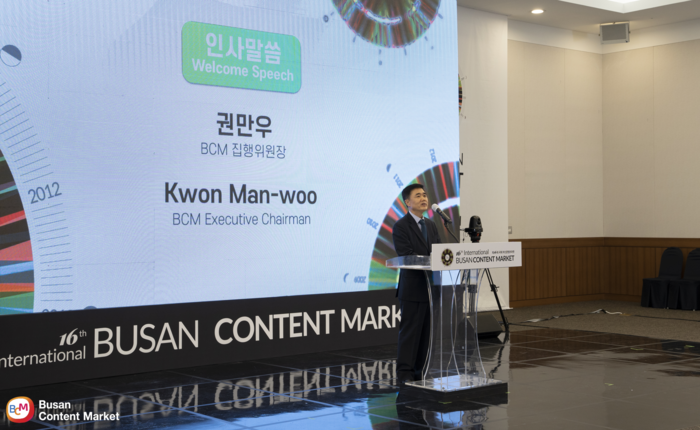 ▲ 8일 오전 진행된 투자협약식에서 환영사를 진행 중인 권만우 집행위원장.Welcome Speech from Mahn-Woo Kwon, Chief Commissioner of the Busan Content Market © 김중건