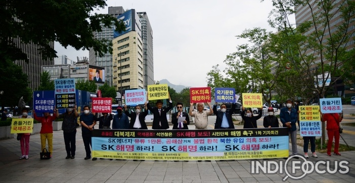 시민사회단체들은 "문재인 정부 임기 중 석탄 등 유사한 대북제재 위반이 발생했다면서 “윤석열 정부는 지금부터라도 강력한 대북제재 국제공조”에 노력을 기울여야 할 것이라고 주장하면서 기자회견을 마치고, 김선홍 행•의정 감시네트워크 중앙회장과 박흥식 부정부패추방실천시민회 대표는 SK최태원 회장실에 SK 1만 톤 유류 불법환적 의혹 해명을 촉구하는 서한문을 접수시켰다. <저작권자 ⓒ 인디포커스 무단전재 및 재배포 금지>