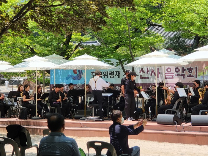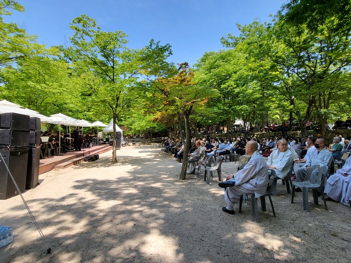 이날 추모재에는 육근 제53사단 군악대가 ‘전우가’ 등 호국영령을 위로하는 연주를 했다. 또 오후 1시 30분에는 통도사 삼성반월교 옆 녹지에서 호국영령을 위로하는 산사 음악회가 마련돼 추모재 참가자와 주말을 맞아 통도사를 방문한 불자에게 호국 노래와 음악을 선사했다.