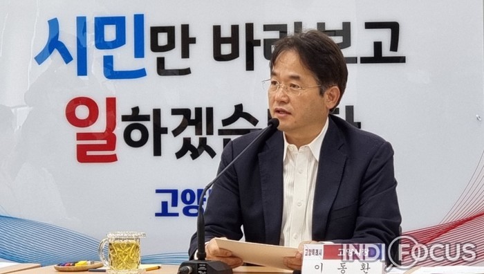 ▲ 27일 오전 시청 평화누리실에서 이동환 고양시장이 37일간의 인수위 활동 결과 보고서 전달식에 앞서 인사말을 하고 있다. 사진/김은해 © 인디포커스