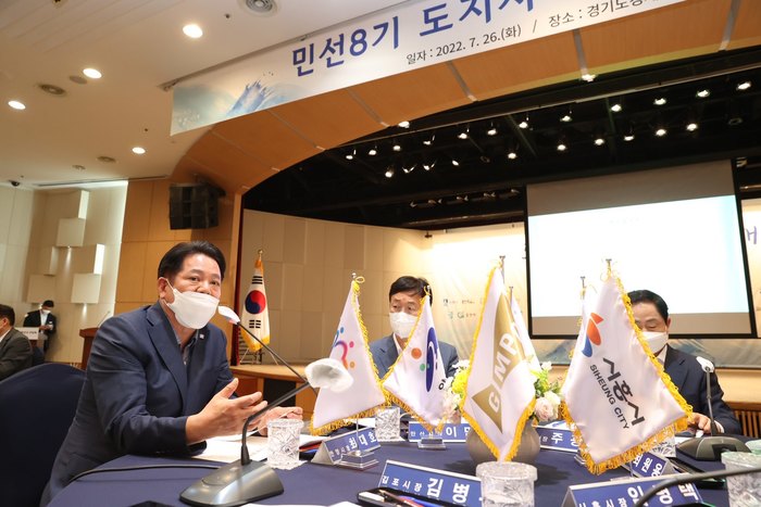 최 시장은 26일 경기도경제과학진흥원(광교홀)에서 열린 제8기 경기도 시장·군수 간담회에 참석, 희망을 품고 시작된 민선 8기지만 고물가와 경기침체로 사회 전반이 매우 어려운 상황이라며, 31개 시·군이 서로 소통해 도민 생활안정에 역량을 모아야 할 것이라고 목소리를 높였다.