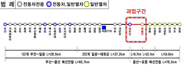 ‘태화강역 ~ 북울산역 광역전철 연장 사업’은 총 사업비 237억 원(국비 166억 원, 시비 71억 원)을 투입하여 태화강역 ~ 북울산역 9.7km 구간을 광역전철이 운행할 수 있도록 시설을 구축하게 된다.