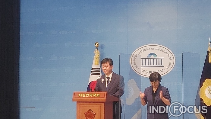 ▲ 더불어민주당 안호영 수석대변인이 6일 오후 국회 소통관에서 기자회견을 갖고, 검찰의 경기도청 사무실 압수수색과 관련한 입장을 표명하고 있다. © 이태훈 기자