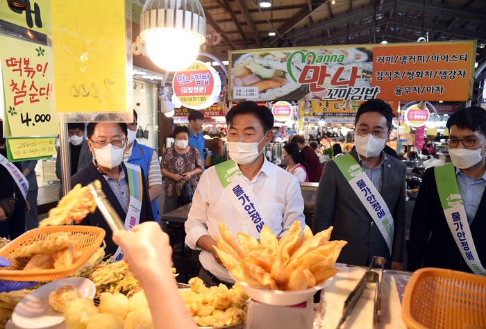 이날 행사에 참석한 국회의원 및 도·시의원, 소비자단체회원 및 물가조사요원 등은 제일시장 곳곳을 돌며 시장을 찾은 시민들에게 전통시장 이용 홍보와 합리적 소비문화 확산을 위한 물가안정 캠페인을 펼쳤다.