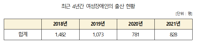 ▲ <최근 4년간 여성장애인 출산 현황 표> © 최종윤 의원실 제공