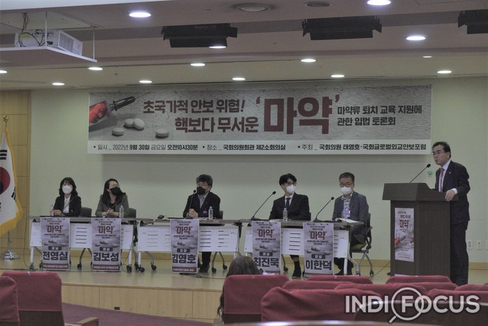 [국회 = 인디포커스] 이태훈 기자 = 마약청정국이란 훈장은 옛말이 된지 오래다. 마약이 우리 사회 곳곳을 잠식한 가운데, 병든 국가를 정상화하기 위한 첫 걸음으로 '마약류 퇴치 입법 토론회'가 열렸다.