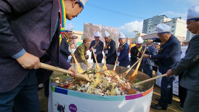 제16회 세계한인의날 기념잔치 부산 동래부 동헌에서 열려2030인분 비빔밥 시연 비빔밥 세계화와 부산세계박람회 유치 기원 "한 끼로 동포 의미 되살려"