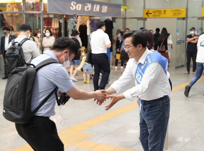 ▲ 김동연 당시 경기도지사 후보가 경기도 전역을 찾아 유권자들에게 지지를 호소하고 있다. © 공동취재사진