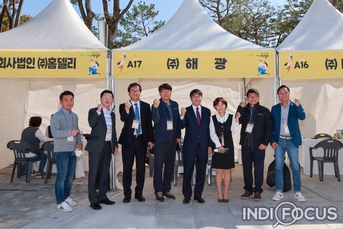 ▲ 이석범 남양주시 부시장이 13일 금곡동 이석영광장에서 열린 '2022 문화가 있는 채용 박람회'에 참석했다. 이날 구인 기업 부스를 방문한 이석범 남양주시 부시장(오른쪽 4번째)이 각 기업 인사담당자들과 김념촬영을 하고 있다. © 남양주시 제공