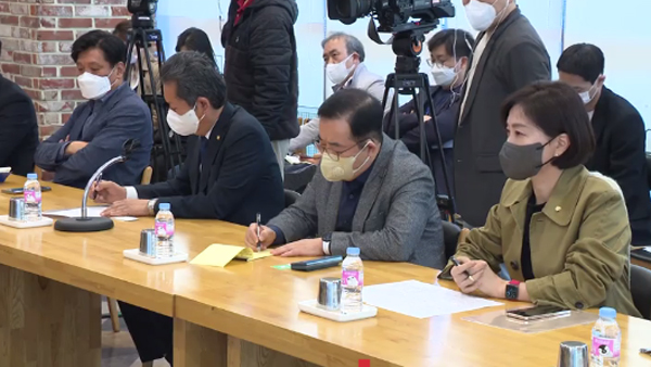 ▲ 국회 과학기술정보방송통신위원회 위원들이 16일 경기도 성남에 위치한 SK C&C 판교캠퍼스 화재 현장을 시찰해 경위 및 대응책에 대해 질의하고 있다. © 공동취재사진