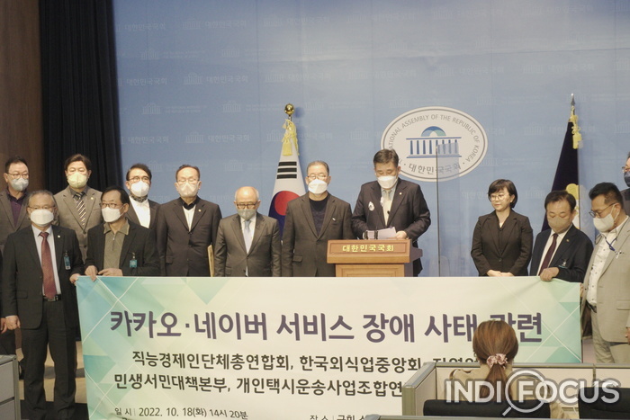 ▲ 국만의힘 최승재 의원과 직능경제인단체총연합회는 18일 국회 소통관에서 기자회견을 열고, '카카오 먹통 사태'에 대한 재발 방지 대책과 실질적 보상을 요구했다. © 이태훈 기자