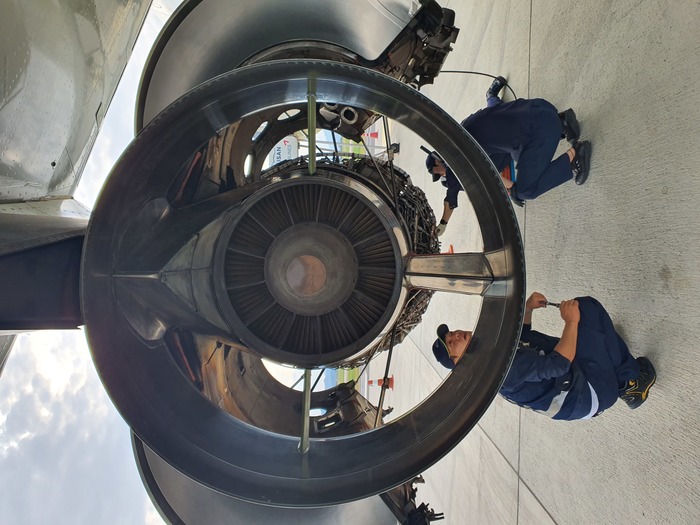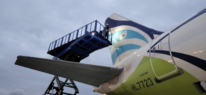 ▲ 에어부산 정비사가 안전운항을 위해 항공기 정비를 실시하고 있다. © 김중건