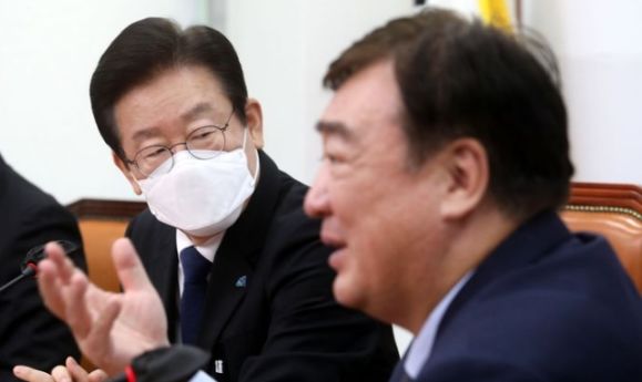 ▲ 더불어민주당 이재명 대표(왼쪽)는 7일 국회 당대표회의실에서 싱하이밍 주한중국대사를 접견하고 양국 현안에 대해 이야기를 나눴다. 싱 대사의 발언을 듣고 있는 이 대표. © 공동취재사진