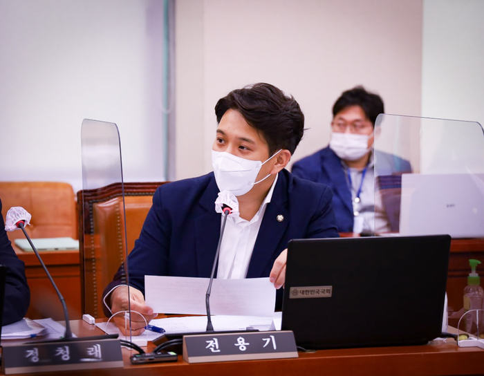 ▲ 더불어민주당 전용기 의원이 상임위 전체회의에 출석해 질의하고 있다. © 전용기 의원 SNS 캡쳐