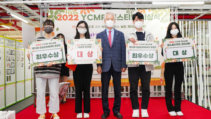 ▲ 와이즈유 영산대학교가 YCMP 페스티벌의 경진대회 시상식을 열고 수상자들과 함께 기념촬영을 하고 있다. ©김중건