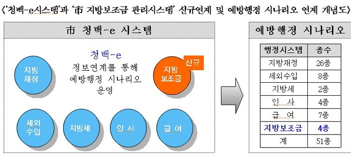 시는 전국 최초로 지방보조금 부정사용 방지를 위해 청백-e 시스템에 지방보조금 관리시스템을 추가로 연계하여 ‘지방보조금 부정사용 상시 예방시스템’을 2022. 12. 1.부터 운영한다.